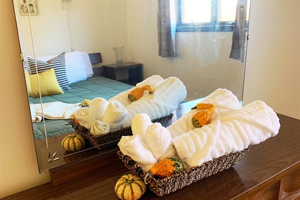 We were not kidding when we said the house has plenty of storage. Bedroom 1 has dressers and a closet.